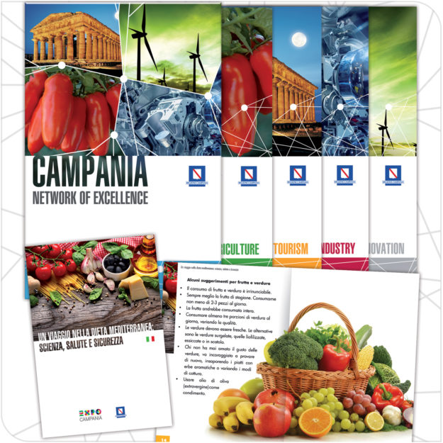 Campania EXPO 2015 CLIENTE Sviluppo Campania 6-7 / 2015 SERVIZIO Affidamento servizio di realizzazione e produzione materiali di promozione e comunicazione delle attività relative al Progetto Campania Expo 2015 ATTIVITÀ Produzione, stampa, e fornitura di strumenti di promozione e comunicazione: brochure, contenitore/cofanetto per brochure, booklet sulla Dieta Mediterranea; progettazione grafica e creativa ed impaginazione degli…